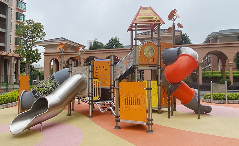 • 兒童戶外游樂設(shè)備室外大型不銹鋼兒童滑梯|佛山東湖洲房地產(chǎn)小區(qū)游樂設(shè)施案例